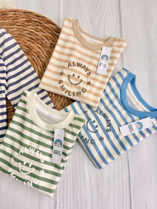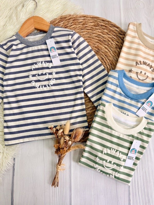 Nuestra remera manga larga de la línea bebé combina rayas suaves con un diseño adorable que transmite alegría en cada detalle. Ideal para el día a día, cómoda y fácil de combinar con cualquier look 💛