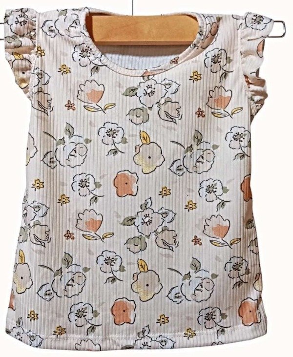 Musculosa de morley estampado. Con volado en mangas.