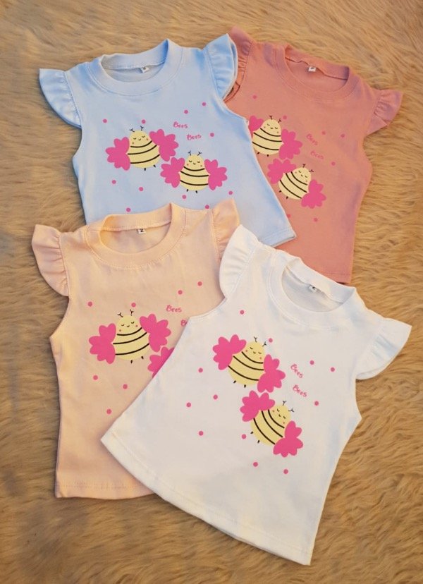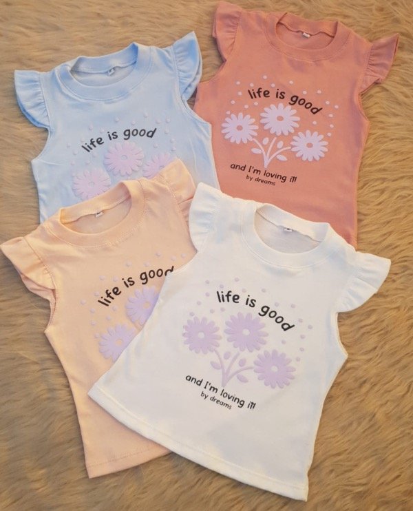 Musculosa de algodón peinado con detalle de vuelo en hombros, estampa central.