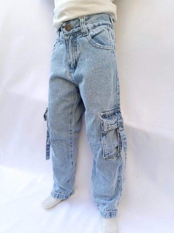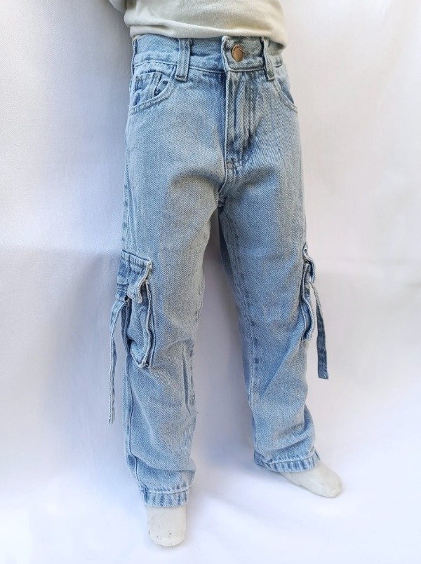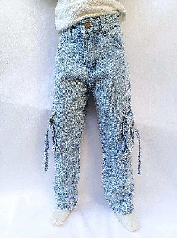 Mom cargo rígido con fuelle y tiras, nevado claro.