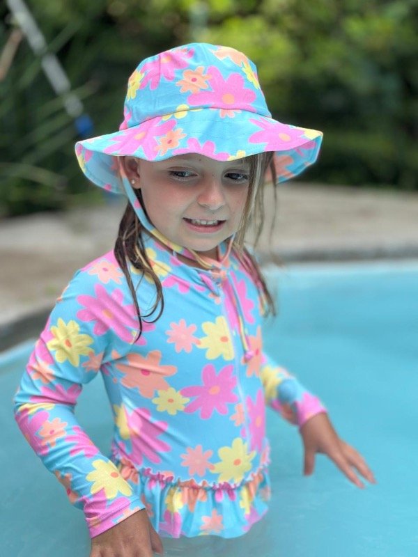 Nuestro conjunto de malla con protección UV50+ es ideal para que las peques disfruten del sol con total comodidad y seguridad. Incluye malla enteriza manga larga y sombrero haciendo juego, ambos con un diseño floral en tonos pastel súper dulce y moderno.