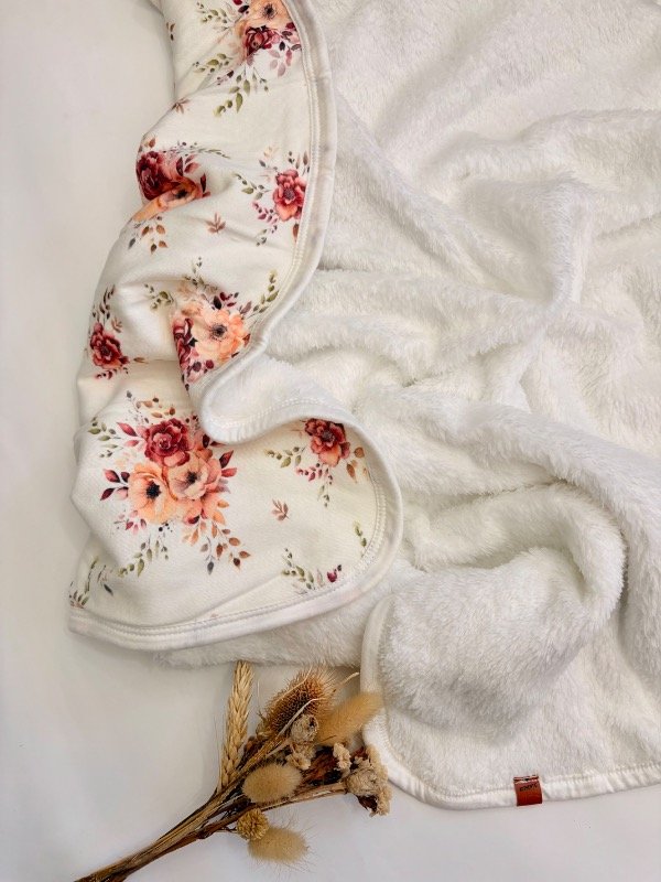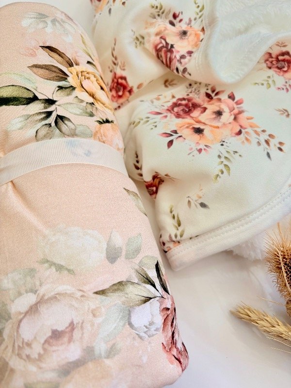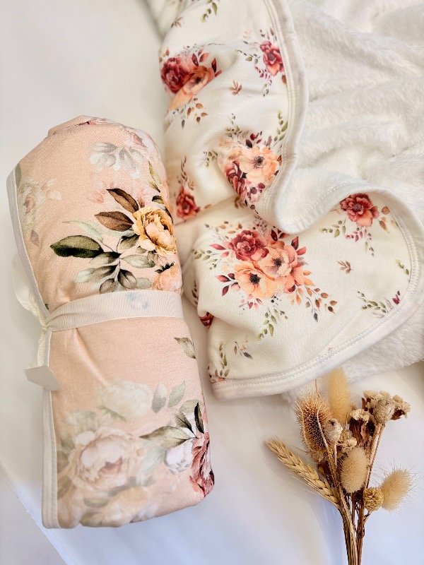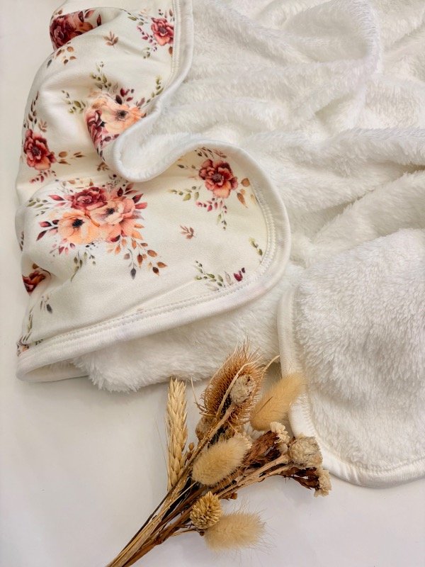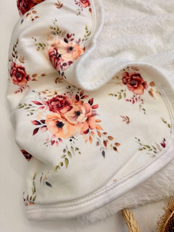 Nuestra manta combina un diseño floral en tonos cálidos con un reverso de plush extra suave, ideal para mantener a tu bebé cómodo y abrigado en todo momento.