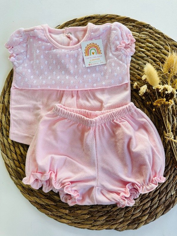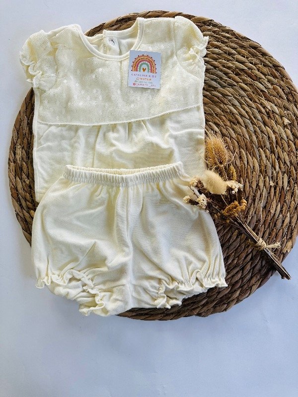 Conjunto de dos piezas, algodón híper premium. Color natural y rosa.