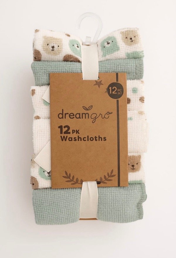 Pack de 6 babitas para bebé en tonos verde suave y blanco, con estampas delicadas de ositos.