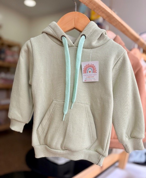 Buzo de frisa invisible con capucha, cordón y bolsillo delantero. Excelente calidad