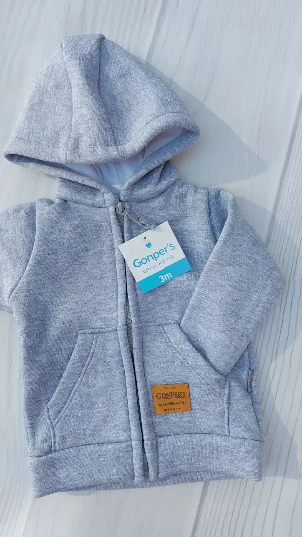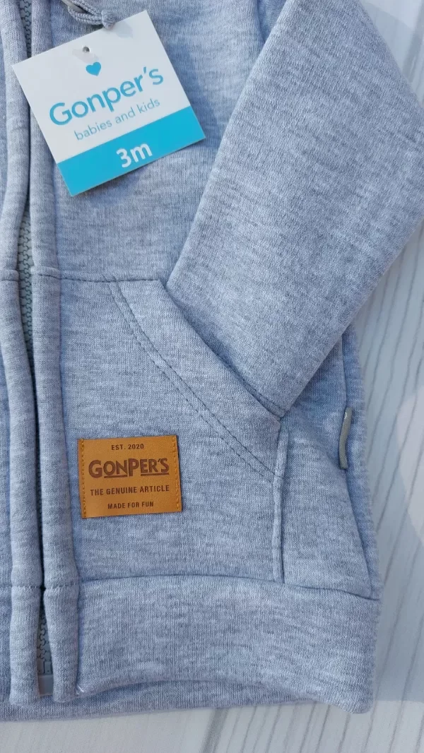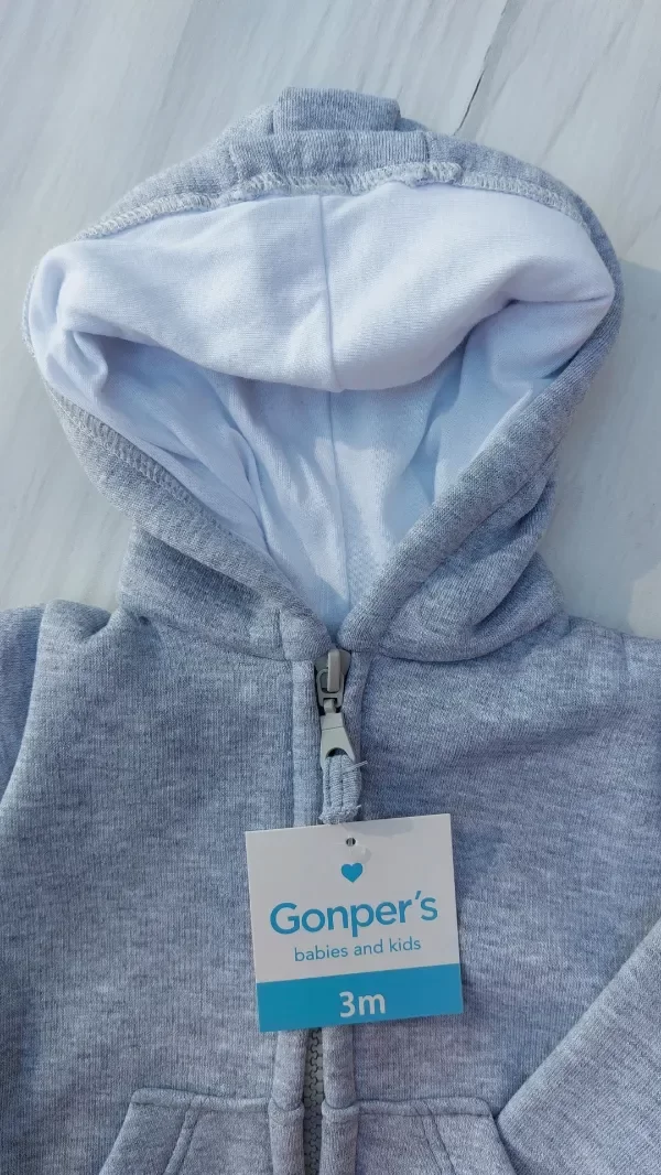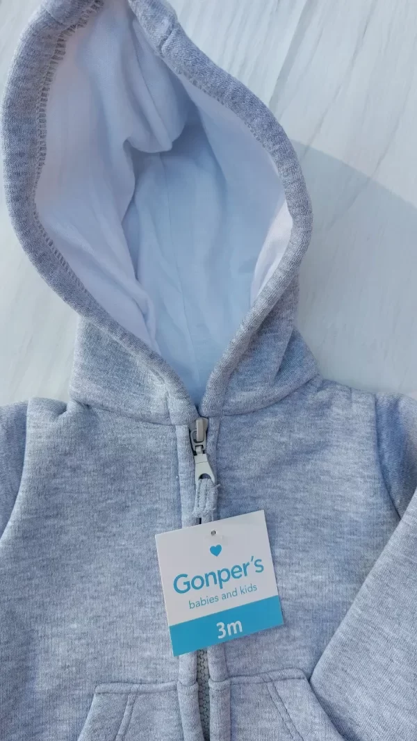 Confeccionada en algodón frisado, capucha forrada. Tiene un pequeño detalle en la capucha.